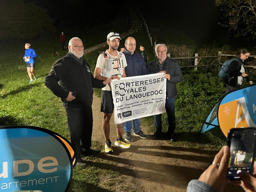 Montségur, Puilaurens, Peyrepertuse... A mi-course, jeudi, Aurélien était arrivé en fin de matinée au pied de Quéribus pour un ravitaillement. Producteurs locaux et marqués Pays Cathare avaient joué le jeu, offrant à l'ultra-trailer une collation indispensable à la poursuite de sa course vers Aguilar, Termes, la traversée des Corbières en pleine nuit... puis les remparts de Carcassonne peu avant 8h, vendredi matin, devant des visiteurs ébahis, avant de prendre la direction pour une ultime ascension : les chateaux de Lastours. 240 km d'une course réalisée à 85% sur des chemins et des sentiers. Il bouclera son circuit avec près d'1h30 d'avance sur ses prévisions.