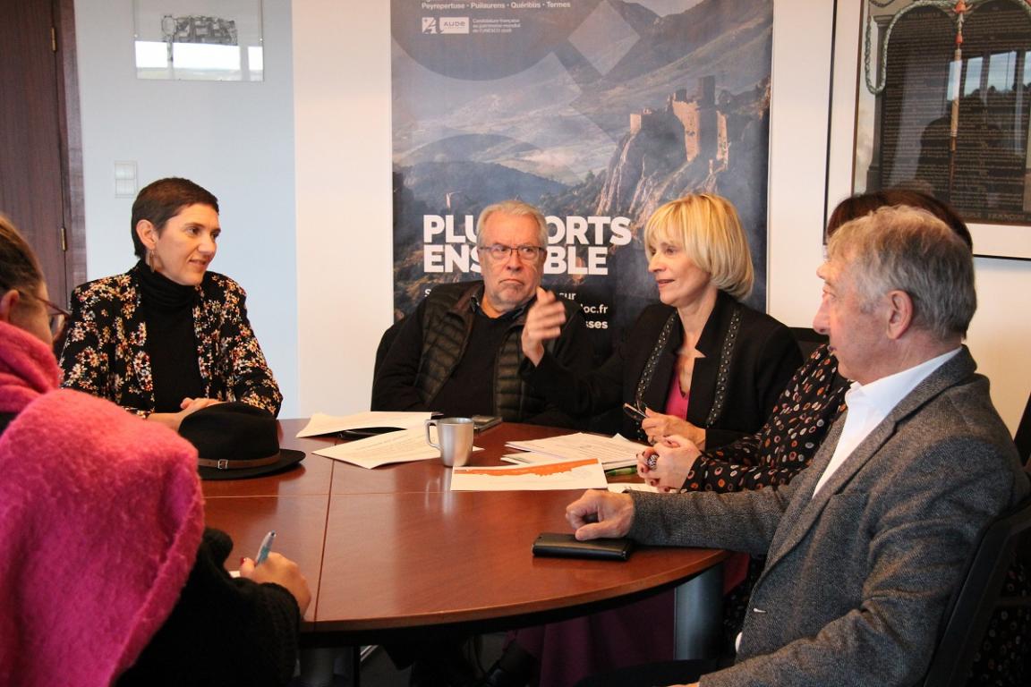 Etaient présents aux côtés d'Hélène Sandragné : Hervé Baro, vice-président en charge des solidarités territoriales et élu du canton des Corbières, Kattalin Fortuné, également conseillère du canton, Alain Giniès, vice-président en charge de l’agriculture et du tourisme, Francis Morlon, vice-président délégué à la transition écologique et Valérie Dumontet, vice-présidente en charge de la démocratie participative et de la jeunesse.